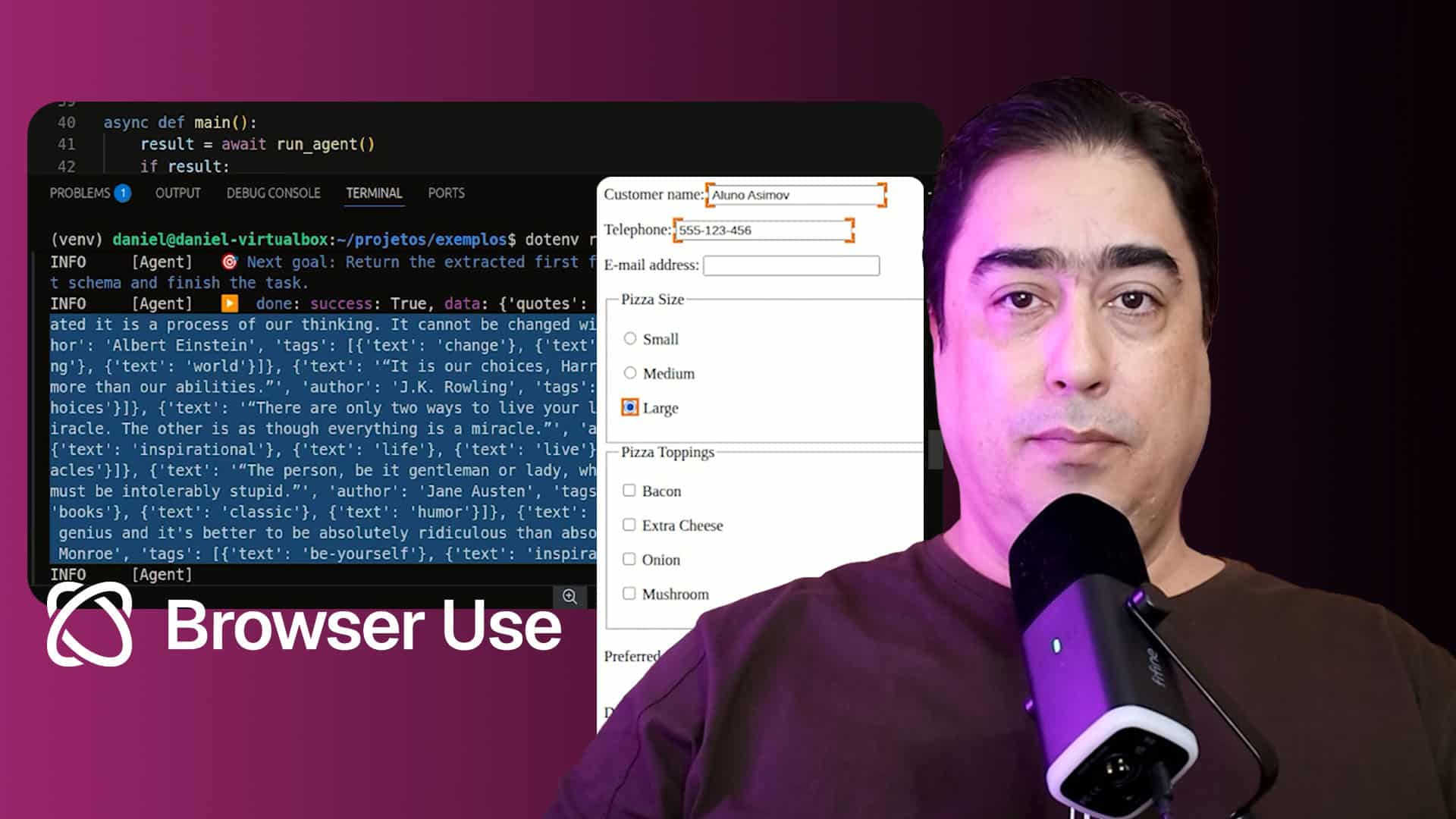 Com browser-use, você vai aprender a usar poderosas funcionalidades para automatizar a navegação e o scraping na web. Esses agentes serão capazes de realizar tarefas como buscar e organizar dados de catálogos, preencher formulários de maneira ágil e até salvar tudo em bancos de dados para usá-los posteriormente.